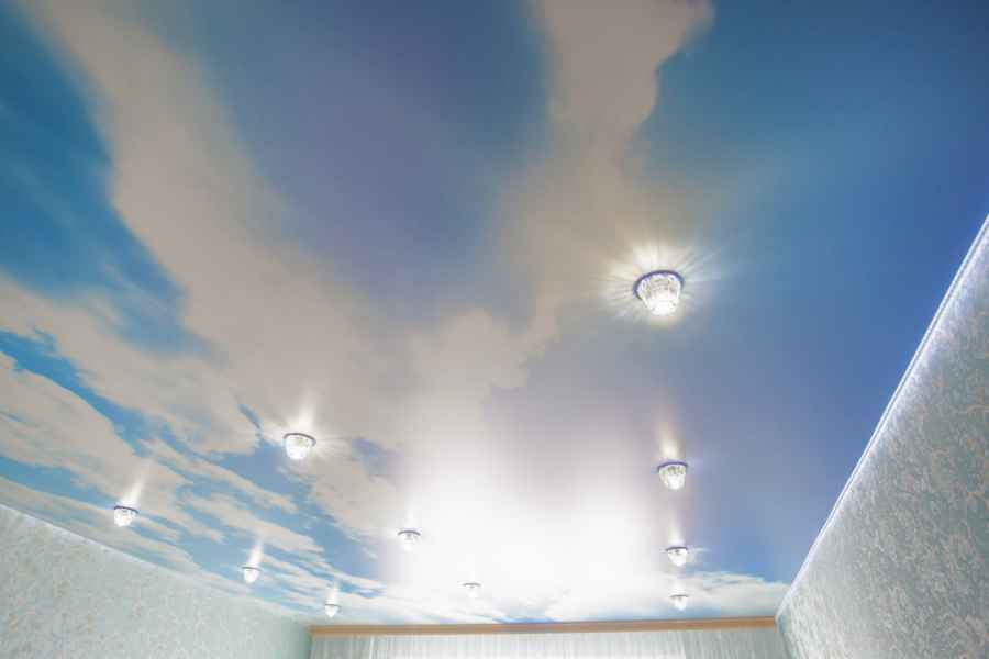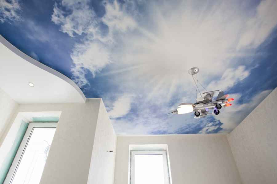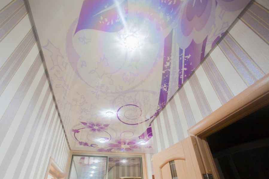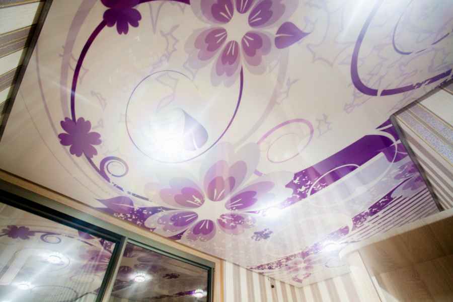 Монтаж таких потолков выполняется очень быстро, для установки не требуется особая зачистка и подготовка площади. Данные поверхности выгодно скрывают все недостатки, изъяны и провода. Вы можете придумать свой вариант и заказать натяжные потолки с рисунком по фото.