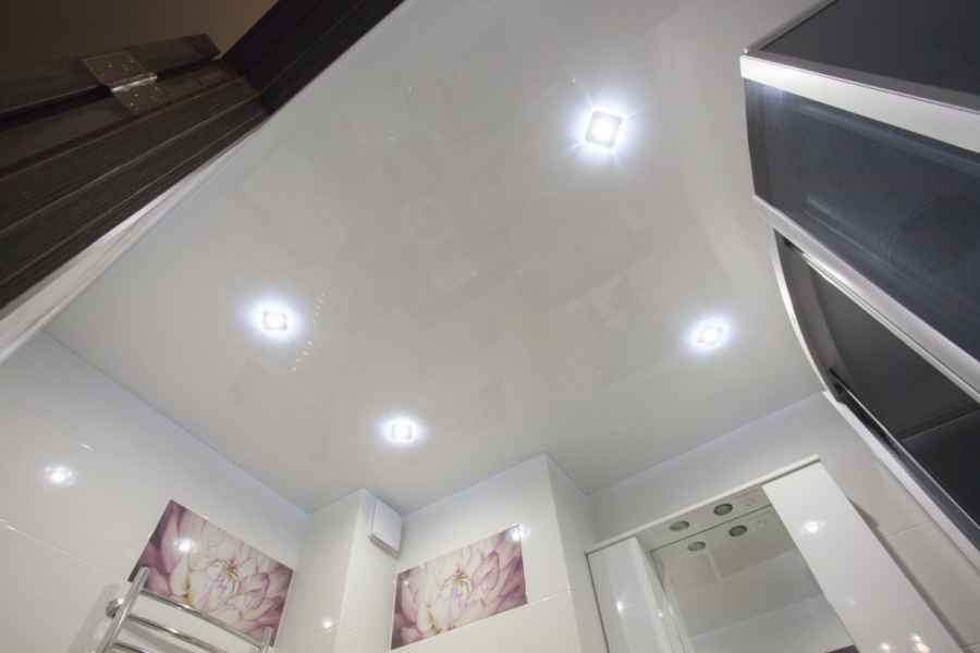 Как было сказано выше, недостатка в цветовом разнообразии глянцевые ПВХ материалы не испытывают, и лаконично сочетаются с большинством дизайнерских проектов. Кроме этого, глянцевый потолок, цена которого доступна большинству населения, отличается высокой пластичностью, допускающей создание самых сложных форм и комбинаций, а также: