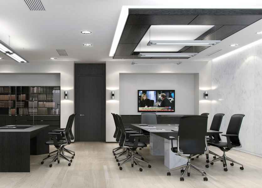 Выбирая материал под натяжной потолок в офис, следует учесть специфику работы в нем персонала, осуществляемой предприятием деятельности, габариты помещения, стиль интерьера, особенности освещения и линий коммуникаций, а иногда и уровня ответственности соседей верхних этажей. Почему, станет понятно дальше.
