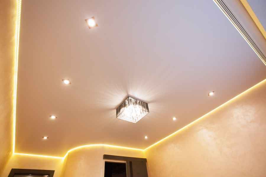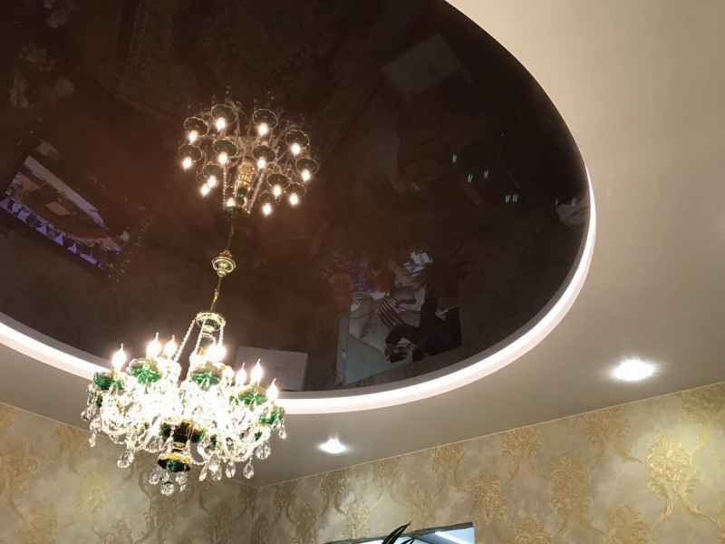 Правильный выбор потолка для зала может значительно изменить вид помещения в целом. Так, к примеру, глянцевое покрытие зрительно увеличивает метраж. А двухуровневый потолок в зал скроет неудачную конфигурацию комнаты. Грамотно установленные светильники позволяют зонировать зал – ведь здесь проводят время люди разных возрастов и предпочтений.